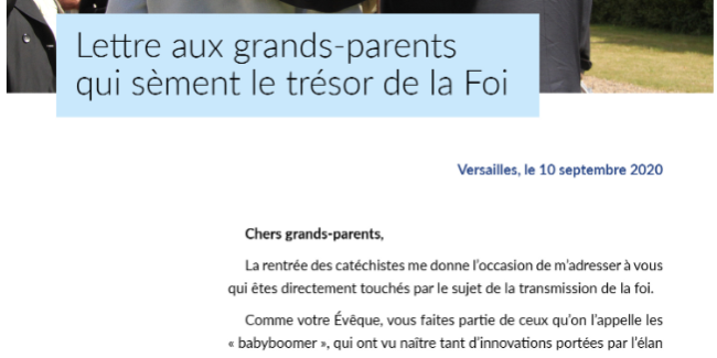 Notre évêque y rappelle combien la transmission de la foi passe par les grands-parents dans leurs échanges privilégiés avec les jeunes générations. C’est peut-être le moment de parler avec eux d’une inscription au catéchisme ou à l’aumônerie ?